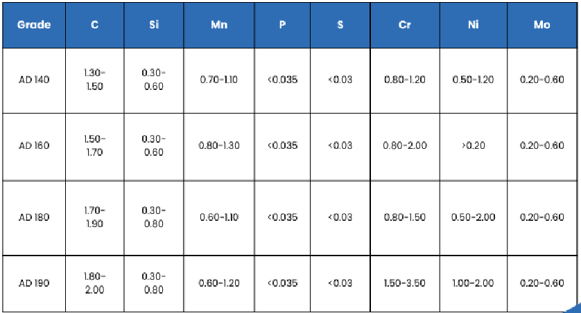 According to different requirements, the carbide contents of the adamite rolls vary. When wears resistance is required content of the carbide must be higher, but when strength is the main factor, it is necessary to select the lower content of the carbide. The heat treatment is normalized and tempered. A soft anneal will transform the pearlite to nodular from when the hardness is lower, while the strength relief anneals has no influence on the structure mbe adopted when higher. The lower hardness rolls have better strength properties and better resistance to fire cracking.According to different requirements, the carbide contents of the adamite rolls vary. When wears resistance is required content of the carbide must be higher, but when strength is the main factor, it is necessary to select the lower content of the carbide. The heat treatment is normalized and tempered. A soft anneal will transform the pearlite to nodular from when the hardness is lower, while the strength relief anneals has no influence on the structure mbe adopted when higher. The lower hardness rolls have better strength properties and better resistance to fire cracking.